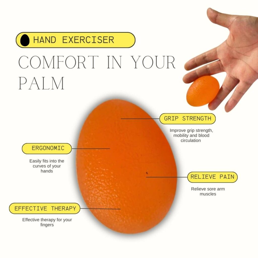 Ergonomically shaped egg-style hand exercisers made from silicone-based material (latex free). Great for :
